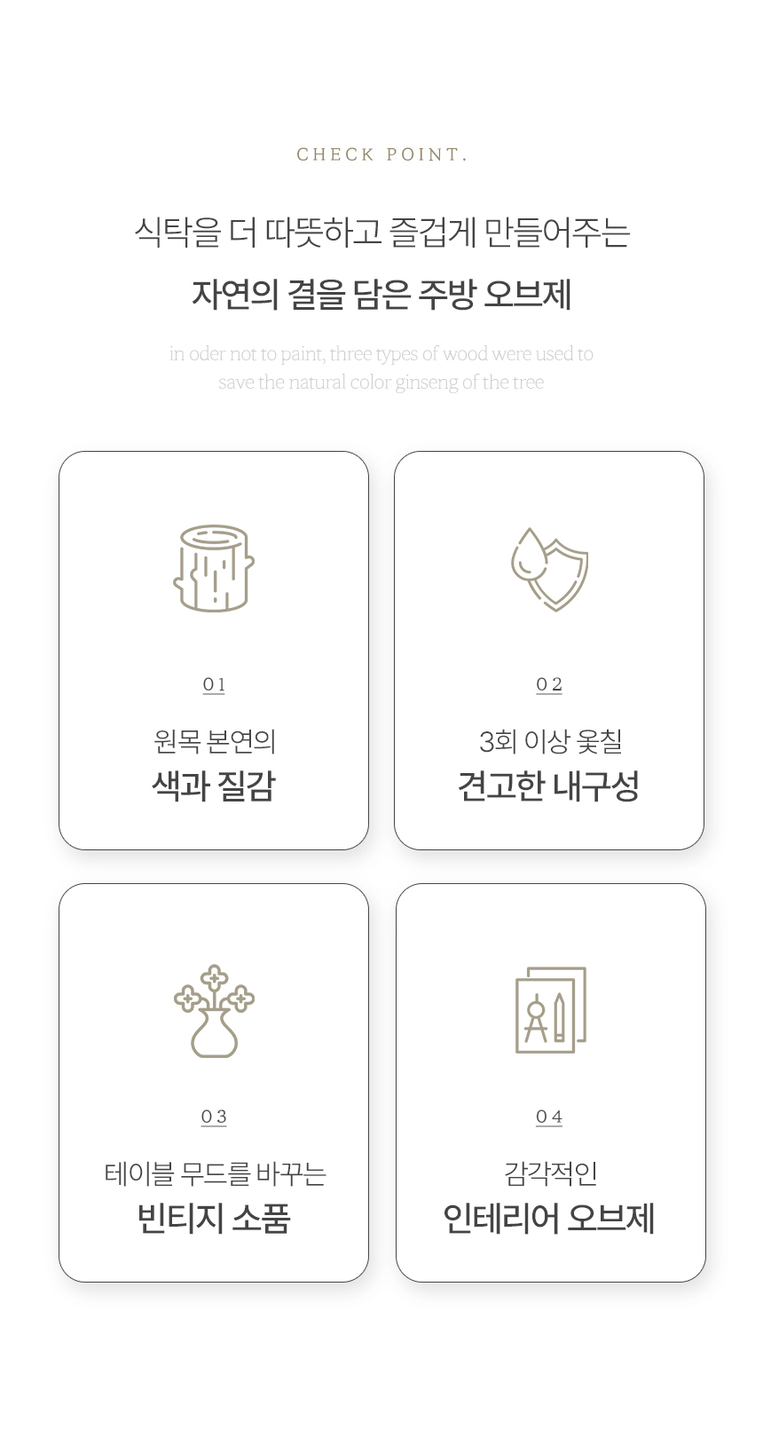 1. 자재 : 샤빌리/메이플나무/체리나무 ( 고급 앤틱가구류에 사용하는 원목)